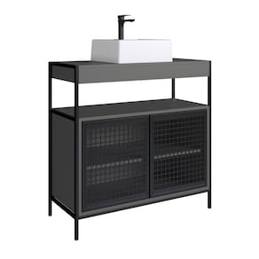 Armário de banheiro estilo industrial com cuba. Possui duas portas vazadas para aumentar a circulação de ar dentro do mesmo, este produto contém uma prateleira central no interior ideal para guardar seus itens de higiene.