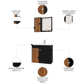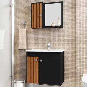Gabinete Banheiro Com Cuba e Espelheira Munique Preto - Bechara