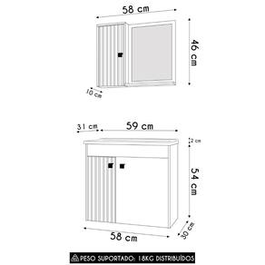 Conteúdo da Embalagem: 1 Espelheira, 1 Gabinete de Banheiro, 1 Cuba.