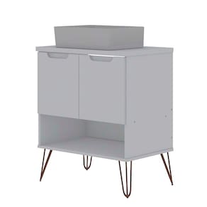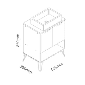 O gabinete Jade é ideal para deixar o ambiente do seu banheiro moderno. Duas portas para armazenar pequenos e médios objetos, acompanha cuba e pés de ferro com sapata de plástico. Possui acabamento UV e atóxico.
