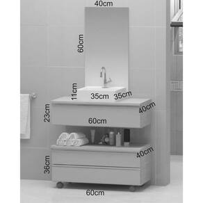 -GABINETE PARTE CIMA com 60cm comprimento / 40cm largura / 23cm altura. Tem puxador de alumínio na porta.