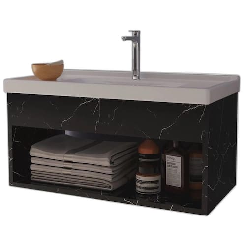 Gabinete para banheiro com cuba e nicho suspenso - branco marmorizado - beta cerrocha Altura: 31cmLargura: 63cmProfundidade: 31,5cmProduzido em mdf;.Acompanha lavatório em.Torneira não inclusa;.Pintura ultravioleta com acabamento brilho.