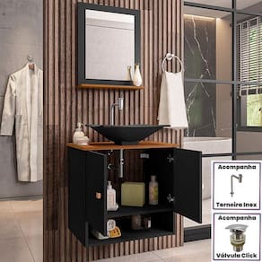 Material da espelheira: MDP de 12 mm no painel e 15 mm na prateleira com espelho de 03 mm de espessura;