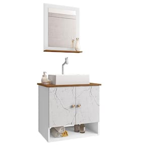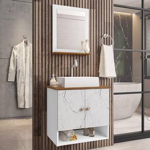 Material da espelheira: MDP de 12 mm no painel e 15 mm na prateleira com espelho de 03 mm de espessura;