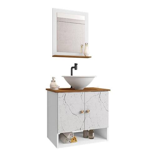 Material da espelheira: MDP de 12 mm no painel e 15 mm na prateleira com espelho de 03 mm de espessura;