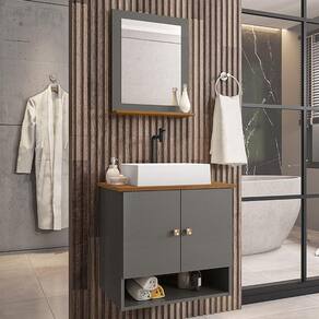Material da espelheira: MDP de 12 mm no painel e 15 mm na prateleira com espelho de 03 mm de espessura;