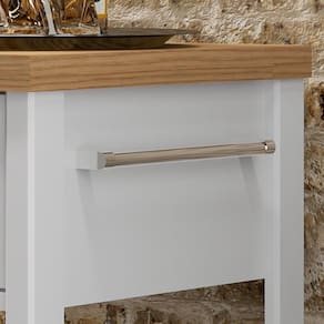 Puxador e porta-toalha metálicos.