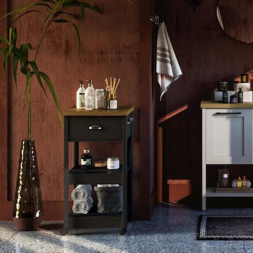 Possui 1 gaveta com corrediças metálicas que suporta até 5 kg.