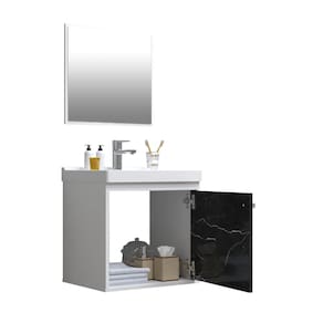 Gabinete banheiro em mdf com pia cuba - veneto Cor: preto Conjunto gabinete veneto riverzza O gabinete suspenso para banheiro é desenvolvido com estrutura em mdf e a cuba em bmc, garantindo mais durabilidade e resistência ao produto. Medida do gabinete: l x a x c 40cm x 41cm x 31,5cm Peso gabinete: 5,6 kg Peso suportado: 10 kg Medida da cuba: l x a x c 40cm x 2,5cm x 31,5cm Furo da torneira: 2,7cm Furo do ralo/válvula: 3,2cm Medida da embalagem produto desmontado : l x a x c 38,3cm x 21,2cm x 46cm Peso da embalagem: 6,15 kg Itens inclusos: 1 gabinete de banheiro, 1 pia e 1 kit de montagem. Não acompanha espelho. Acompanha cuba: sim cor: branca Material da cuba: bmc Estilo: moderno Furação para cuba e torneira: sim Material da porta: mdf Material do puxador da porta: plástico Material principal: mdf Possui espelho: não Possui gabinete: sim Possui gaveta: não Possui iluminação: não Possui pés: não Possui portas: 01 Possui prateleiras: não Possui rodízio: não Kit montagem: sim apenas para montagem, não acompanha parafusos para fixação Necessita montagem: sim Complexidade da montagem: baixa pode ser montado por uma pessoa sozinha Origem do produto: nacional do fornecedor: 03 meses Recomendações de uso, manutenção e limpeza: limpar com pano levemente umedecido Tipo de dobradiça/corrediça da porta: metálica Tipo de porta: bater Tipo de puxador da porta: externo Marca: Não Informado