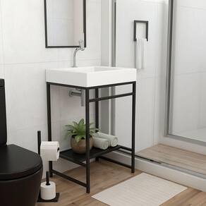 Gabinete Banheiro Ferro Iron Black 60x45cm Cuba Rennes Branco Fosco Gabinete Banheiro Ferro Iron Black 60x45 cm Cuba Rennes Branco Fosco - Gabinete de Ferro Iron Black com Cuba Rennes Sobreposta em Pedra Ardósia