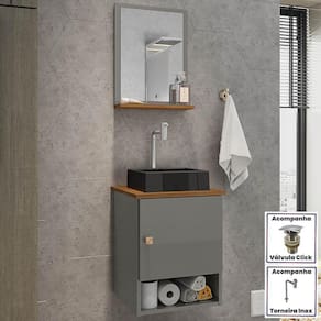 Material do gabinete: MDP de 12 mm e 15 mm com espelho de 03 mm;