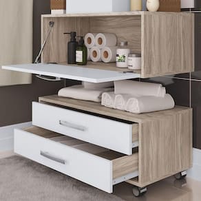 Conjunto balcão gabinete de banheiro completo moderno.