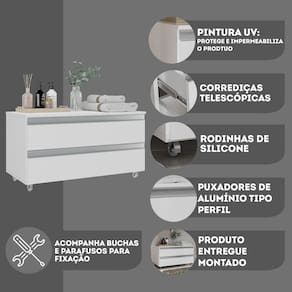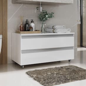 Gabinete Banheiro Rodinhas Joia 80cm 02 Gavetas Branco Inteiro