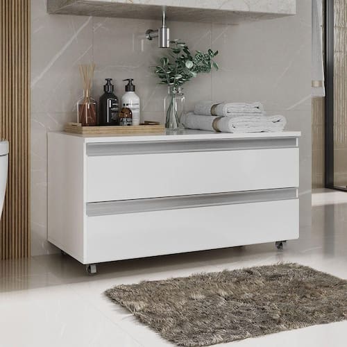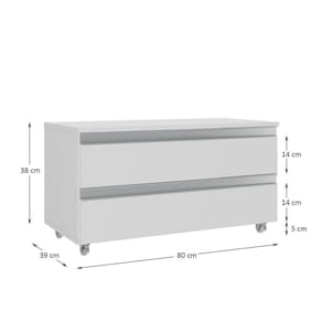 Gabinete Banheiro Rodinhas Joia 80cm 02 Gavetas Branco Inteiro - Blush
