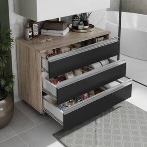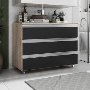 Gabinete Banheiro Rodinhas Joia 80cm 03 Gavetas Madeirado Preto