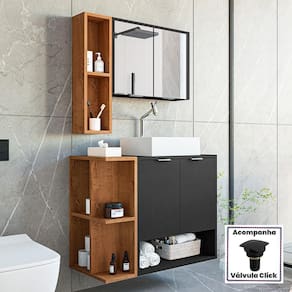 Material da espelheira: MDP de 12 mm no painel e 15 mm na prateleira com espelho de 03 mm de espessura;