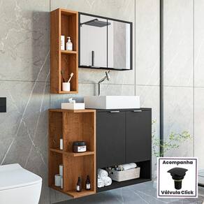 Material da espelheira: MDP de 12 mm no painel e 15 mm na prateleira com espelho de 03 mm de espessura;
