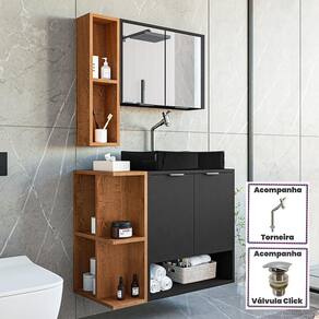Material da espelheira: MDP de 12 mm no painel e 15 mm na prateleira com espelho de 03 mm de espessura;