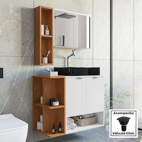 Material da espelheira: MDP de 12 mm no painel e 15 mm na prateleira com espelho de 03 mm de espessura;