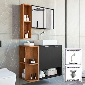 Material da espelheira: MDP de 12 mm no painel e 15 mm na prateleira com espelho de 03 mm de espessura;