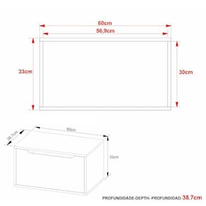 Dimensões do produto montado: Altura: 33cm | Largura: 60cm | Profundidade: 38,7cm *Você pode consultar as medidas detalhadas na imagem técnica do produto. *As cores do produto podem sofrer variações de tonalidade de acordo com as configurações do seu dispositivo.