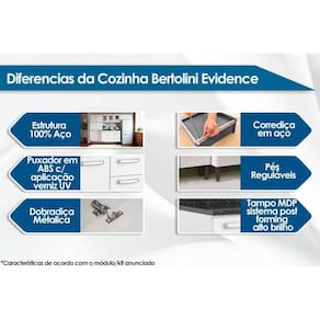Gabinete de Cozinha Modulado Bertolini Evidence 7026 2 Portas e 4 Gavetas s/ Tampo 120cm - Branco