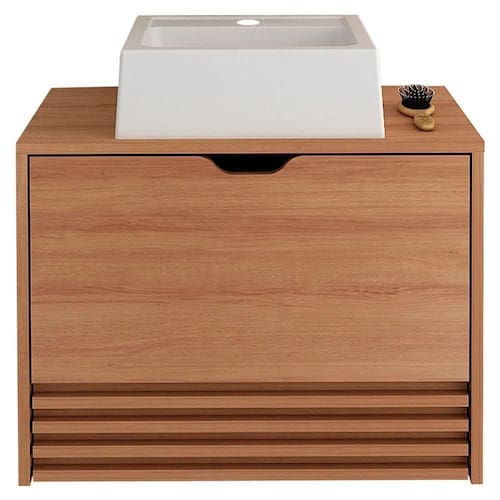 Produto: 01 Gabinete 01 Cuba | Material: Madeira | Profundidade: 38,70 Cor: Amendoa