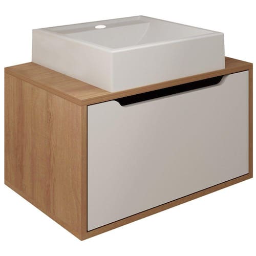 Gabinete Com Cuba Para Banheiro BN3630x46 Amendoa Branco Tecno Mobili - Marrom