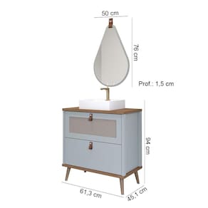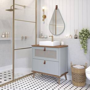 Características: Estrutura em MDF Acabamento em Pintura UV Puxador e alça em couro 01 Porta com pistão à gás e dobradiças metálicas 01 Gaveta com corrediças telescópicas Acompanha cuba em mármore sintético Acompanha espelho