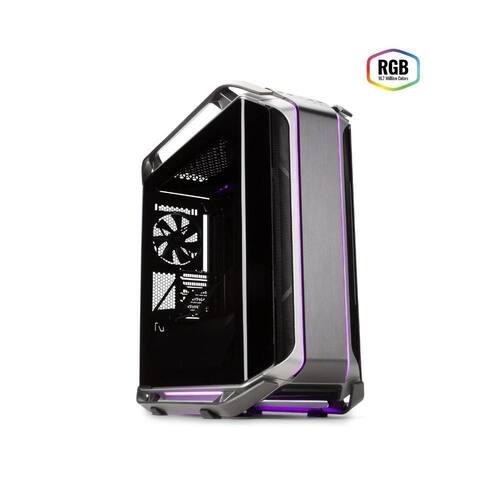 Duas faixas paralelas de iluminação endereçável RGB são executadas continuamente do painel superior para o painel frontal, com iluminação ARGB ambiente na parte inferior que reflete contra as barras de aluminio.