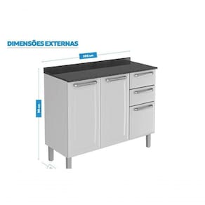 Ampla Organização Interna: Conta com 3 portas e 2 gavetas espaçosas, além de prateleiras internas, oferecendo um excelente espaço para organizar seus utensílios, panelas e mantimentos.