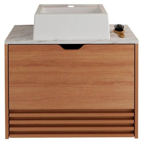 Produto: 01 Gabinete 01 Cuba | Material: Madeira | Profundidade: 38,70 Cor: Amendoa Marmore Branco