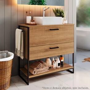 Gabinete E Cuba Para Banheiro Estilo Industrial 80 CM Porta e Gaveta, completo e elegante, para acrescentar versatilidade e charme à seu banheiro. Possui estrutura em aço e MDP de 15 mm, porta basculante e gaveta, corrediças e dobradiças metálicas. Possui também, toalheiro lateral e puxadores em metal, além de prateleira para armazenamento de seus itens mais utilizados e/ou decoração. Sua cuba em mármore sintético possui design contemporâneo e furação para torneira (não inclusa). Com design industrial e bom gosto, ele possui o que se espera de um móvel conceitual e totalmente funcional. Este móvel chegará na sua casa separado em 02 volumes.