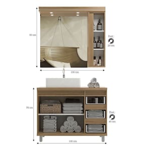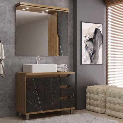 Marca de Confiança Cewal. Acabamento da Cuba: Acetinado Acabamento da Gaveta: BP Acabamento da Porta: BP Acabamento da Prateleira: BP Acompanha Cuba: Sim Acompanha Gaveteiro: Não Acompanha Lâmpada: 02 Acompanha Manual de Instalação: Sim Acompanha Parafusos Para Fixação Na Parede: Não Acompanha Tampo: Sim Acompanha Válvula: Não Ambiente Principal: Banheiro codigo_ean: 7900288016249 Cor: Itapuã/Portoro Cor da Cuba: Branco Cor do Produto: Itapuã/Portoro Escala de Brilho: Fosco Escala de Brilho da Porta: Fosco Escala de Brilho da Prateleira: Fosco Espessura do Espelho: 3 mm Formato do Espelho: Retangular Formato Espelheira: Retangular Furação para Cuba e Torneira: Sim Gaveta com Chave: Não Itens Inclusos: 01 Gabinete, 01 Cuba, 01 Armário, 01 Manual Manual de Montagem e Instalação: https://product-hub-prd.madeiramadeira.com.br/921128/documents/63dee562-caec-414b-b235-425c13c4397b2537383572817308300549595.pdf Marca: Cewal Material da Cuba: Mármore Sintético Material da Gaveta: MDF/MDP Material da Porta: MDF Material da Prateleira: MDF Material do Tampo: MDF Material dos Pés: Alumínio Material Principal: MDF Medida da Cuba (C x L x P): 44,5x36,5 Medida da Espelheira (A x L x P): 90x100x20 Medida do Gabinete (A x L x P): 78x100x40 Necessita Montagem: Não Origem do Produto: Nacional Peso: 76,9 kg Peso Máximo por Gaveta: 5 kg Peso Máximo por Prateleira: 5 kg Possui Espelheira: Sim Possui Gabinete: Sim Possui iluminação: Sim Possui Nichos: Não Possui Pés: 04 Possui Porta de Vidro: Não Possui Recorte No Tampo Para Cuba: Não Possui Recorte No Tampo Para Misturador: Não Possui Rodízio: Não Possui Sifão: Não Possui Tampo: Sim Possui Tampo de Vidro: Não Produto Montado: Sim Quantidade de Espelhos: 01 Recomendações de Uso, Manutenção e Limpeza: Não utilizar produtos abrasivos ou solventes Sapatas Niveladoras: Sim Suporte para Toalheiro: Não Tamanho do Espelho (A x L): 84x75 Tamanho do Gabinete: Grande: Acima de 80cm de largura Tipo de Corrediça da Gaveta: Metálica Telescópica Tipo de Cuba: Apoio Tipo de Dobradiça/Corrediça da Porta: Com Amortecedor Tipo de Gabinete: Gabinete de Chão Tipo de Porta: Abrir Tipo de Puxador da Gaveta: Cava Tipo de Puxador da Porta: Cava Válvula indicada: 7/8"