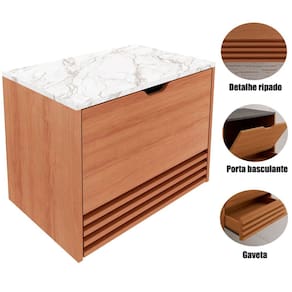 O Gabinete de Banheiro 60 cm Sâmia une funcionalidade e estética em um design elegante. Com detalhe ripado que valoriza o visual do móvel, ele traz um toque contemporâneo e sofisticado ao banheiro, destacando-se na decoração do ambiente.