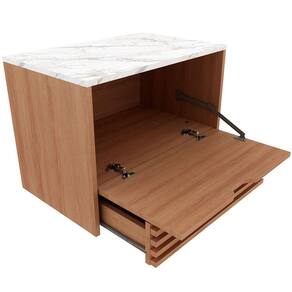 Características do Armário de Banheiro 60 cm com Cuba: - Estrutura em MDP; - Acabamento em BP e parte pintura UV; - 1 porta basculante; - 1 gaveta com corrediças metálicas; - Detalhe em ripado; - Suporta até 10 kg tampo e 3 kg gaveta e interno; - Cuba em mármore sintético e acabamento em brilho polido; - Não acompanha torneira; - Não acompanha objetos de decoração;
