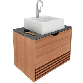 Características do Armário de Banheiro 60 cm com Cuba: - Estrutura em MDP; - Acabamento em BP e parte pintura UV; - 1 porta basculante; - 1 gaveta com corrediças metálicas; - Detalhe em ripado; - Suporta até 10 kg tampo e 3 kg gaveta e interno; - Cuba em mármore sintético e acabamento em brilho polido; - Não acompanha torneira; - Não acompanha objetos de decoração;