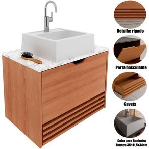 • Material: Gabinete: Estrutura em MDP / Cuba: Mármore sintético