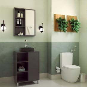 Altura do Conjunto: 148 cm Ambiente: null Ambiente Principal: Banheiro Cor: Grafite Informação Complementar: 1x Armário de Banheiro com Espelho 1 Porta de Correr 2 Preteleiras Julia Grafite Largura: 60 Altura: 65 Peso: 9.4 Profundidade: 14 Necessita Montagem: Sim