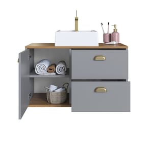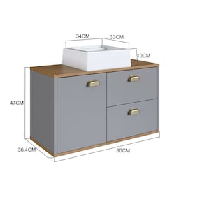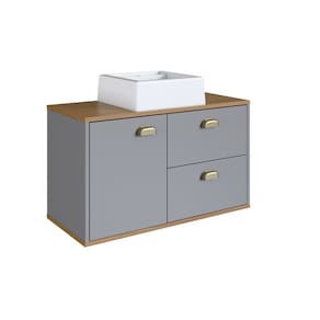 Gabinete de Banheiro 80cm 100% Mdf com 1 Porta e 2 Gavetas com Cuba Lívia Freijó/Urbi - Cinza
