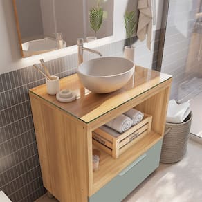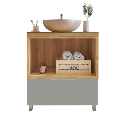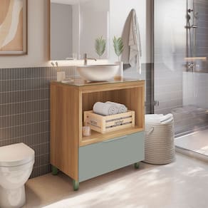 Gabinete de Banheiro 80cm com Caixa Organizadora Marquesa 70cm MDF Nesher - Verde Musgo