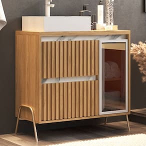 Produto Completamente Montado: Receba seu gabinete pronto para instalação, economizando tempo e esforço. Acabamento da Cuba: Polido Acabamento da Gaveta: BP Acabamento da Porta: BP Acabamento da Prateleira: BP Acompanha Cuba: Sim Acompanha Manual de Instalação: Não Acompanha Parafusos Para Fixação Na Parede: Não Acompanha Válvula: Não Altura dos Pés: 16 cm Altura Máxima dos Pés: 16.0000 Ambiente Principal: Banheiro codigo_ean: 7900288022943 Comprimento da Prateleira: 25 cm Cor: Itapuã/Thassus Cor da Cuba: Branco Cor do Produto: Itapuã/Thassus Escala de Brilho: Fosco Escala de Brilho da Porta: Fosco Escala de Brilho da Prateleira: Fosco Formato da Cuba: Retangular Furação para Cuba e Torneira: Não Gaveta com Chave: Não Itens Inclusos: 01 Gabinete, 01 Cuba Manual de Montagem e Instalação: https://product-hub-prd.madeiramadeira.com.br/969913/documents/c136c249-59b8-4057-b6c4-0252a096a3362549839572817313491915045.pdf Marca: Cewal Material da Cuba: Mármore Sintético Material da Gaveta: MDF Material da Porta: MDF Material da Prateleira: MDF Material do Tampo: MDF Material dos Pés: Metal Material Principal: MDF Medida da Cuba (C x L x P): 44,5x36,5 Necessita Montagem: Não Origem do Produto: Nacional Peso: 47 kg Peso Máximo por Gaveta: 5 kg Peso Máximo por Prateleira: 5 kg Possui Espelhos: Não Possui Nichos: Não Possui Pés: 04 Possui Recorte No Tampo Para Cuba: Não Possui Recorte No Tampo Para Misturador: Não Possui Rodízio: Não Possui Sifão: Não Possui Tampo: Sim Possui Tampo de Vidro: Não Produto Montado: Sim Recomendações de Uso, Manutenção e Limpeza: Não utilize produtos abrasivos. Não derrame água em demasia. Utilize pano seco com detergente neutro. Resistente à Chuva: Não Sapatas Niveladoras: Não Suporta Até (kg): 30 kg Tipo de Corrediça da Gaveta: Metálica Telescópica Tipo de Cuba: Apoio Tipo de Dobradiça/Corrediça da Porta: Metálica Tipo de Gabinete: Gabinete de Chão Tipo de Móvel para Banheiro: Gabinete com Cuba Tipo de Móvel para o Banheiro: Gabinete de Banheiro Tipo de Porta: Bater Tipo de Puxador da Gaveta: Não Possui - Abertura por Fecho Toque Tipo de Puxador da Porta: Não Possui Válvula indicada: 7/8"