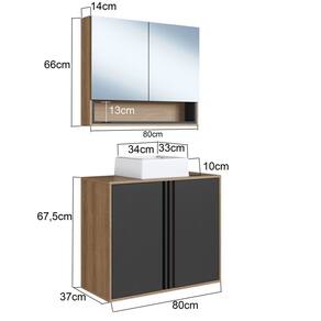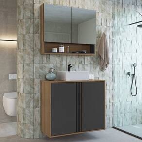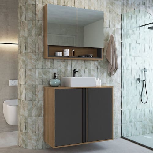O Conjunto para banheiro CJ8040 é essencial para manter a organização e deixar seu espaço mais estiloso. O balcão possui duas portas e uma prateleira interna, sendo bem espaçosos e possuindo um design clean. Já a espelheira é ideal para organizar itens de higiene e beleza em seu interior. Além de funcional, o conjunto contribui para complementar a decoração, economizando espaço em banheiros menores e mantendo os itens organizados e acessíveis. Produto acompanha cuba. Acabamento da Cuba: Alto Brilho Acabamento da Porta: Finish Foil Acabamento da Prateleira: Finish Foil Acompanha Cuba: Sim Acompanha Gaveteiro: Não Acompanha Manual de Instalação: Sim Acompanha Parafusos Para Fixação Na Parede: Sim Acompanha Tampo: Sim Acompanha Válvula: Não Altura do Espelho: 49 cm Ambiente Principal: Banheiro codigo_ean: 7900288232496 Complexidade da Montagem: Média: pode ser montado por mais de uma pessoa e/ou necessite de maior conhecimento para montagem Cor: Mel/Grafite Cor da Cuba: Branco Cor da Porta: Preto Cor do Produto: Mel/Grafite Cor Flex: Não Cor Interna: Mel Escala de Brilho: Fosco Escala de Brilho da Porta: Fosco Escala de Brilho da Prateleira: Fosco Espessura do Espelho: 3 mm Formato da Cuba: Retangular Formato do Espelho: Retangular Formato Espelheira: Retangular Furação para Cuba e Torneira: Não Itens Inclusos: 1 Espelheira, 1 Gabinete, 1 Cuba, Kit Ferragens e Manual de Montagem Largura do Espelho: 39 cm Linha ou Coleção: Antônia Manual de Montagem e Instalação: https://product-hub-prd.madeiramadeira.com.br/853479512/documents/9b88fb51-0d96-4581-b279-0cbc311732463171550522517566456933178.pdf Marca: FAEMA Material da Cuba: Mármore Sintético Material da Porta: MDP Material da Prateleira: MDP Material do Tampo: MDP Material Principal: MDP Medida da Cuba (C x L x P): 10x34x33 Medida da Espelheira (A x L x P): 66x80x14 Medida do Gabinete (A x L x P): 67,5x80x37 Montagem Flex: Não Necessita Montagem: Sim Origem do Produto: Nacional Peso: 35,6 kg Peso Máximo por Prateleira: 5 kg Possui Espelheira: Sim Possui Gabinete: Sim Possui Gavetas: Não Possui iluminação: Não Possui Nichos: Sim Possui Pés: Suspenso Possui Porta de Vidro: Não Possui Recorte No Tampo Para Cuba: Não Possui Recorte No Tampo Para Misturador: Não Possui Rodízio: Não Possui Sifão: Não Possui Tampo: Sim Possui Tampo de Vidro: Não Produto Montado: Sim Quantidade de Espelhos: 02 Espelhos com Tamanhos Iguais Recomendações de Uso, Manutenção e Limpeza: Para a limpeza do móvel utilizar pano levemente umedecido com água Sistema de Montagem: Parafusos, cavilhas e minifix Suporta Até (kg): 45 kg Suporte para Toalheiro: Não Tamanho do Espelho (A x L): 49x39 Tamanho do Gabinete: Médio: de 60cm a 80cm de largura Tipo de Cuba: Sobrepor Tipo de Dobradiça/Corrediça da Porta: Metálica Tipo de Fixação do Espelho: Silicone Tipo de Gabinete: Gabinete Suspenso Tipo de Porta: Bater Tipo de Puxador da Porta: Cava Marca: Não Informado