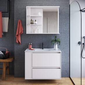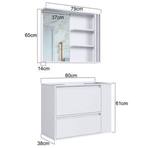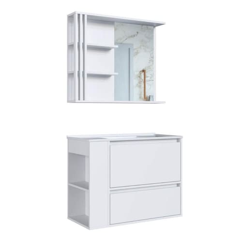 O conjunto para banheiro CJ2002 é produzido em MDP 15mm e acabamento FF fosco. O gabinete possui 1 nicho lateral que pode ser montado tanto do lado esquerdo como direito do gabinete, 1 porta basculante com dobradiça metálica e pistão à gás e 1 gaveta com corrediça metálica e que suporta até 5kgs. Estrututa do fundo em 3mm. A espelheira possui 2 prateleiras que suportam 2kgs cada, montagem flex dir/esq e 1 espelho de 3mm colado. Produto suporta até 25kgs. Conteúdo da embalagem: móvel, ferragens e manual de montagem. Necessita fixação na parede e acompanha os parafusos para a fixação. A fixação das peças e/ou acessórios é feita por parafusos e cavilhas. Para uma limpeza mais efetiva, utilizar apenas pano macio umedecido e sabão neutro. Não utilizar produtos abrasivos. Garantia de 03 meses contra defeitos de fabricação. Medidas do produto gabinete (AxLxP): 61x80x38cm. Medidas do produto espelheira (AxLxP): 65x79x14cm. Peso total do produto: 34,30kgs. Produto acompanha lavatório branco em mármore sintético. Marca: Não Informado