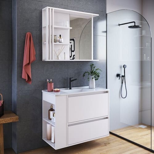 O conjunto para banheiro CJ2002 da Faema possui gabinete com nicho lateral que irá acomodar perfeitamente utensílios essenciais para o seu banheiro e ainda você pode escolher de que lado do gabinete você quer usá-lo! Produto acompanha lavatório em mármore sintético, uma porta basculante e uma gaveta. A espelheira tem um grande diferencial onde você pode escolher colocar as prateleiras e ripado do lado direito ou do lado esquerdo. Possui espelho. Altura do Conjunto: 126 cm Ambiente: null Ambiente Principal: Banheiro codigo_ean: 7900288015181 Cor: Branco Cor do Produto: Branco Informação Complementar: 1x Gabinete de Banheiro Suspenso 80cm Estela com 01 Gavetão, 1 Basculante com Lavatório Branco Largura: 80 cm Altura: 61 cm Peso: 25,3 kg Profundidade: 38 cm Necessita Montagem: Sim