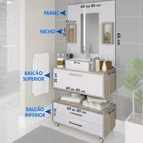 - Balcão superior: 30cm altura / 80cm comprimento / 39cm profundidade