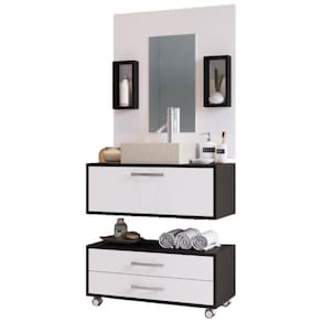 Acompanha balcão inferior, balcão superior, painel e nichos.