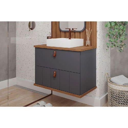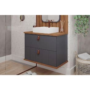 Gabinete de Banheiro Balcão Milano 1 Porta e 1 Gaveta c/Cuba 80cm Titanio/Freijo - MGM