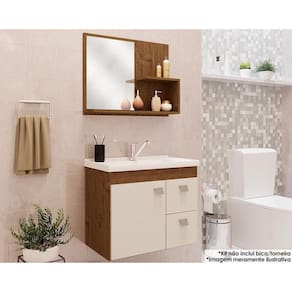 Conjunto de Banheiro Balcão Suspenso Isa c/ Cuba 55cm e Armário c/ Espelho Amendoa/Off White - MGM Marca: MGM