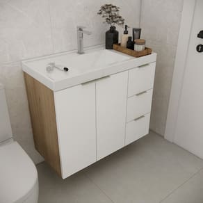Gabinete de Banheiro com Cuba Vittare 79,6Cm Estilare Gab5003 Carvalho/Branco Gaveta Direita